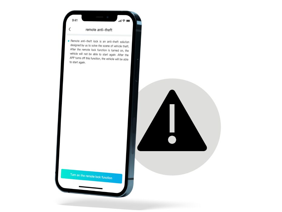 Si le véhicule est volé et que la fonction antivol est activée, vous pouvez le verrouiller à distance via le réseau 4G. Le démarrage du moteur n'est pas possible tant que la fonction n'est pas désactivée.