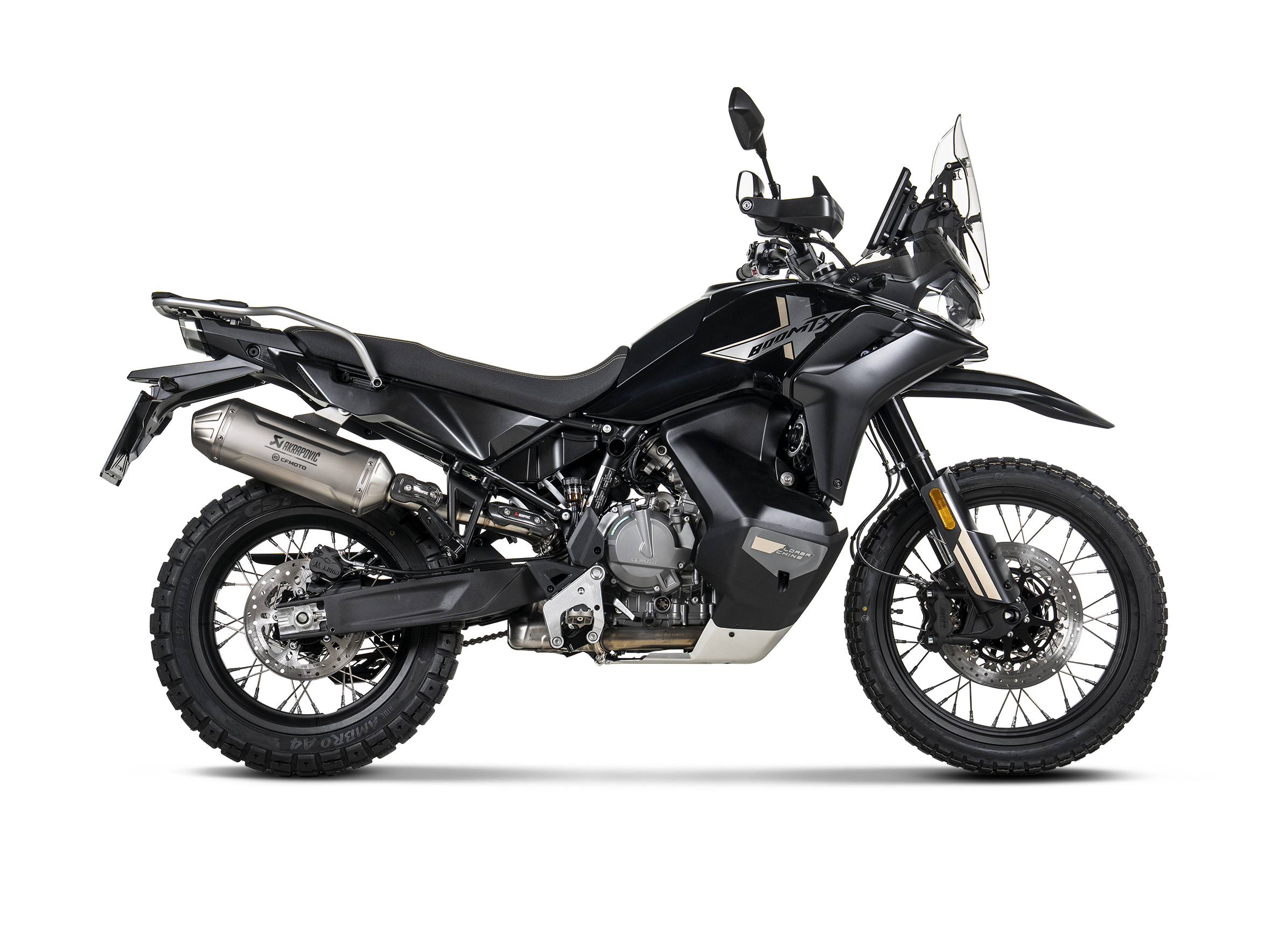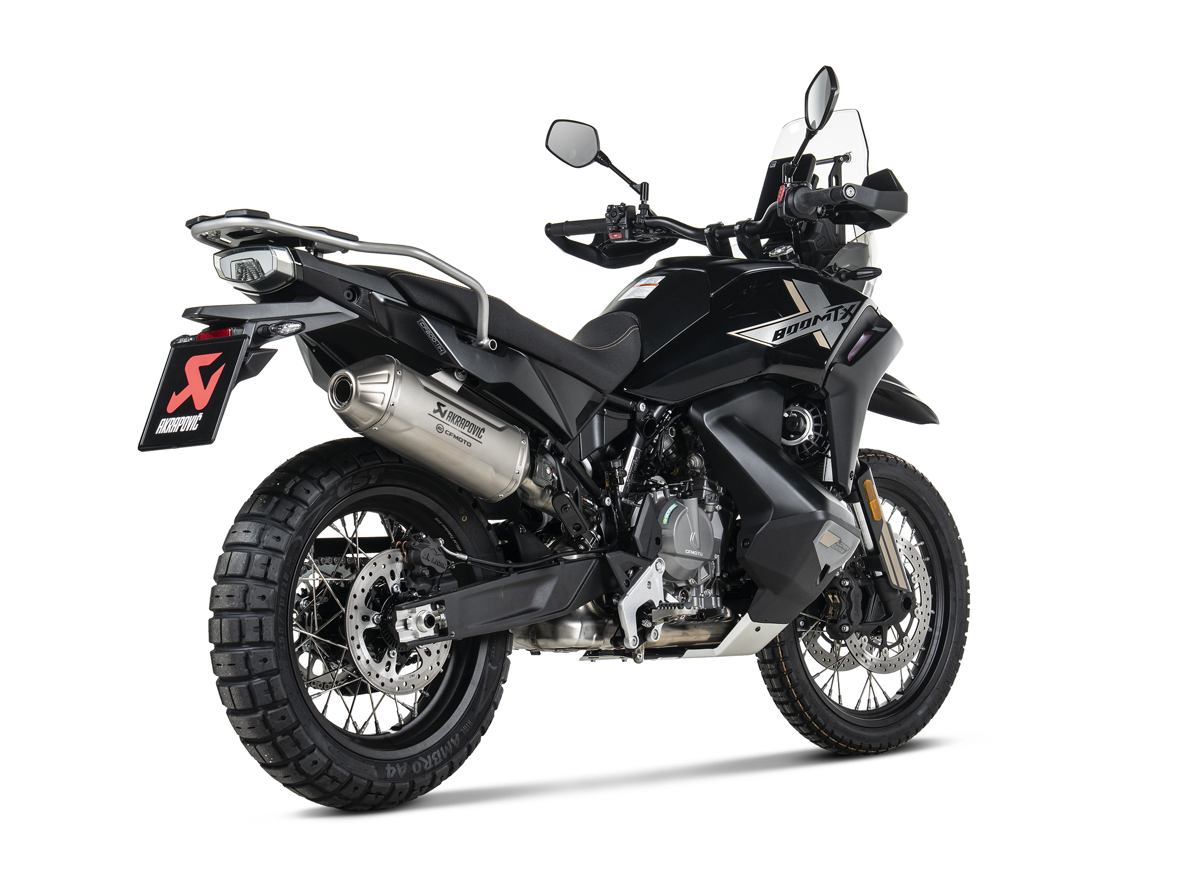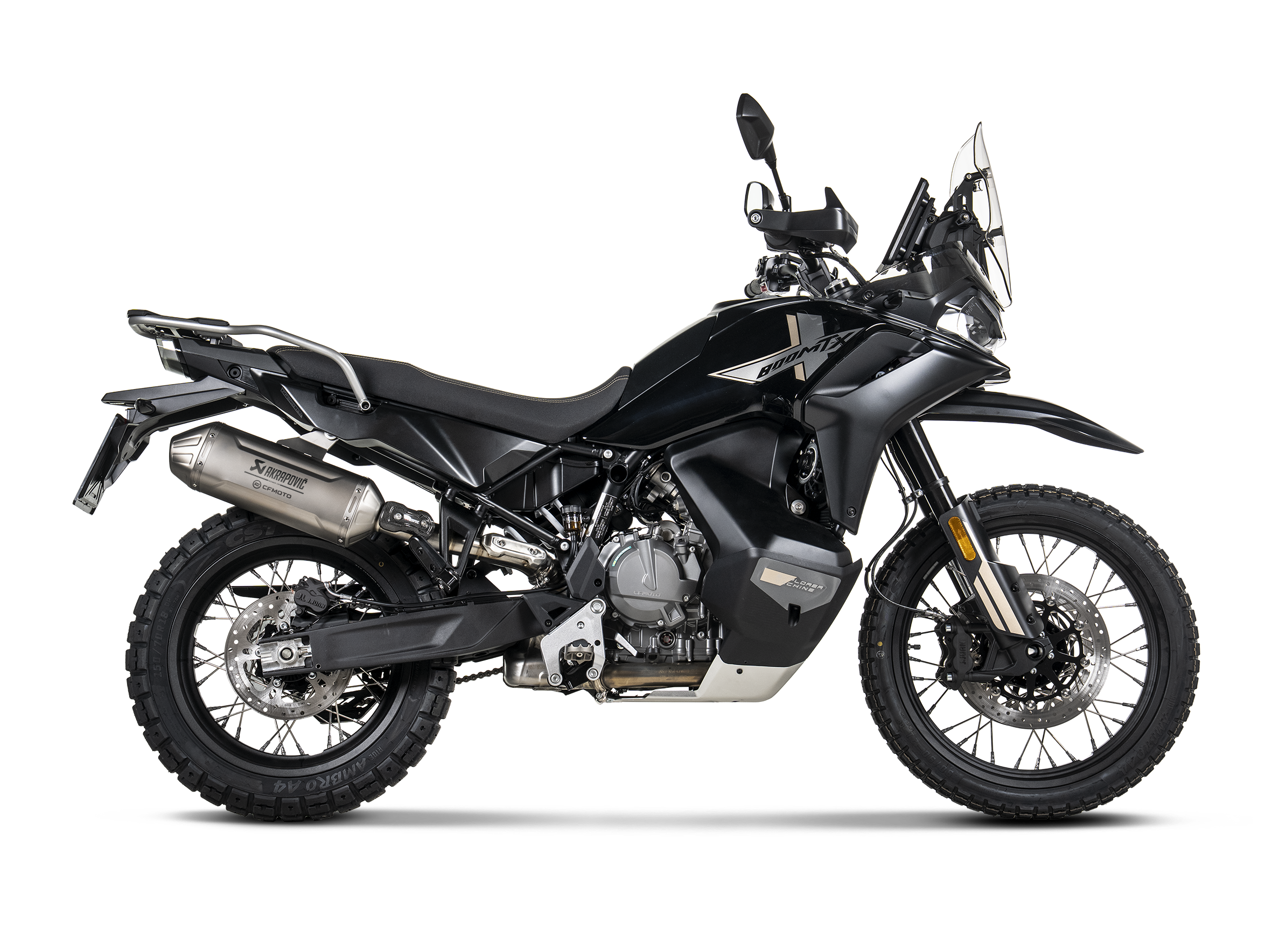 Til je motor naar een hoger niveau met de Akrapovič Slip-On uitlaat, speciaal ontworpen voor de CFMOTO 800MT-X. Ten eerste voldoet deze uitlaat aan de strenge Euro5+ homologatie. Dit geeft je motor de look en prestaties van een Dakar Rally-fiets.